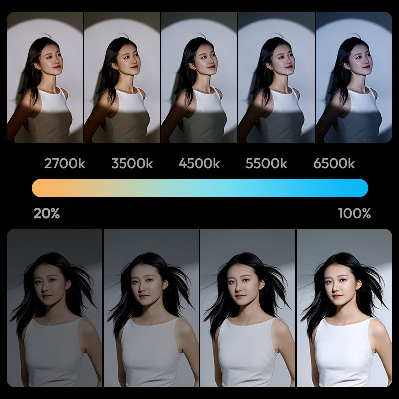 Nahtlose Anpassung zwischen 2700K und 6500K und Feineinstellung der Helligkeit für dynamische Lichteffekte.