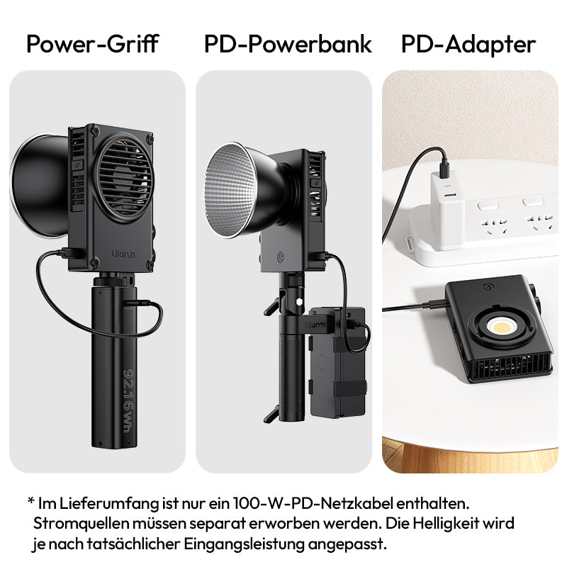 Ein kompaktes Design mit einer Leistung von 100 W, um Ihre Ideen zu beleuchten und Ihre Aufnahmen auf die nächste Stufe zu bringen.