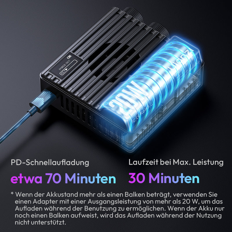 Dank der PD-Schnellladefunktion, die von der Typ-C-Schnittstelle unterstützt wird, sind Sie immer mit Strom versorgt, egal ob Sie eine Powerbank verwenden oder direkt aufladen.