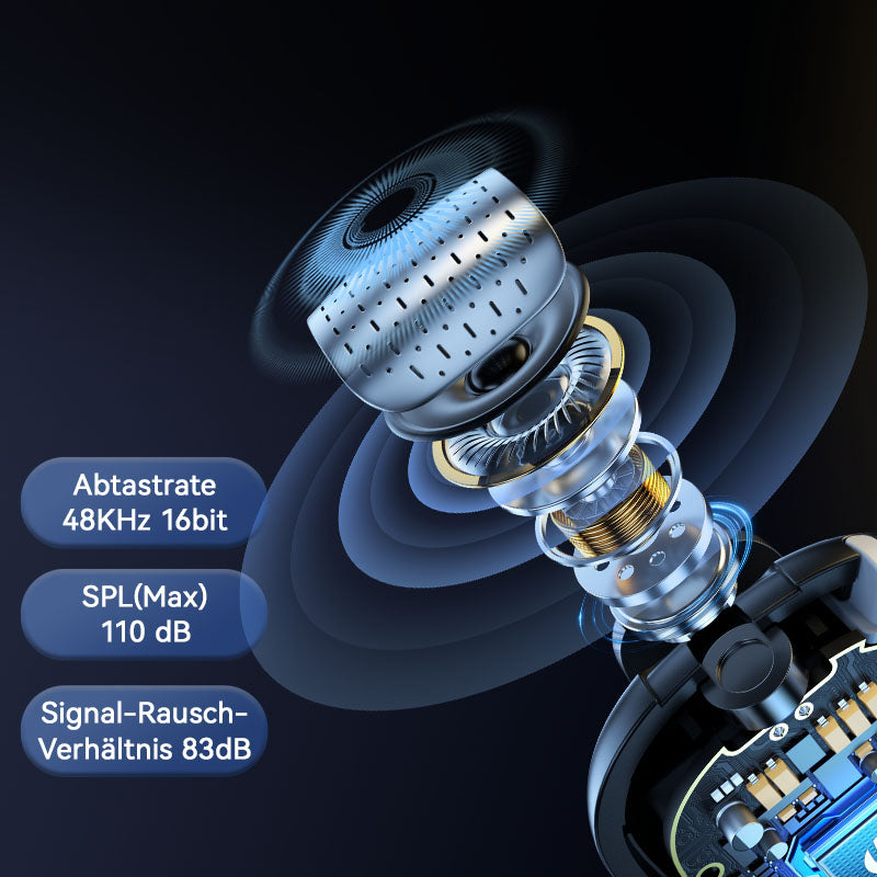 Dieses drahtlose Mikrofon läuft im digitalen 2,4-GHz-Band und bietet Ihnen eine stabile und klare Audioübertragung bis zu 50 m (Sichtlinie) und bis zu 30 m (ohne Sichtlinie).