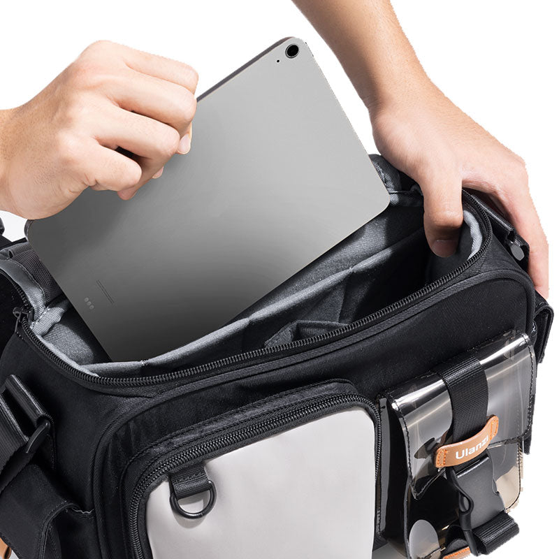 *Die Klappe kann auch in einem Innenfach verstaut werden, damit Sie noch schneller auf Ihre Ausrüstung zugreifen können.