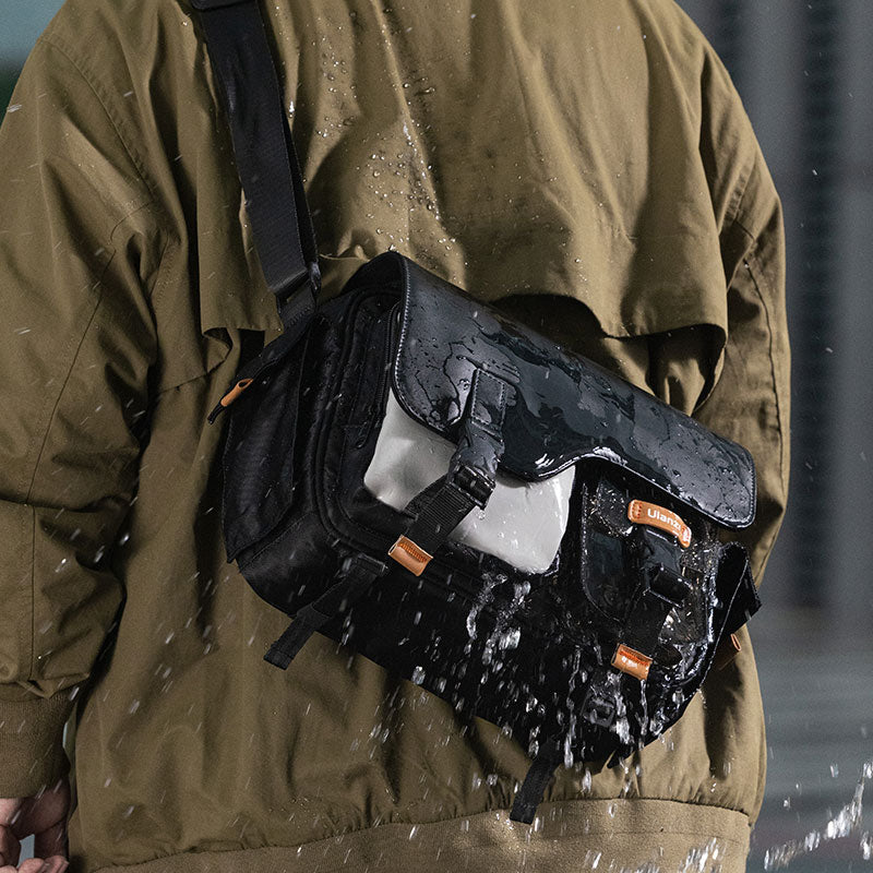 Aus hochwertigen Materialien gefertigt, ist diese Tasche langlebig und spritzwassergeschützt. Der weiche, aber robuste Stoff behält seine Form über lange Zeit.