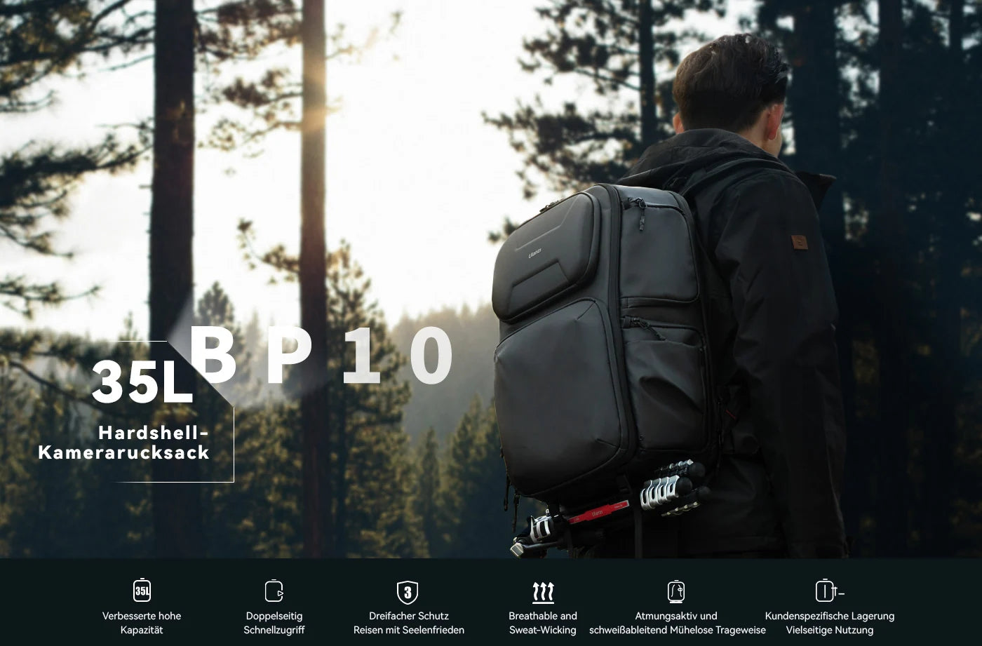 Ulanzi BP10 Hardshell Kamerarucksack 35L wurde für die heutige Ausrüstung von Berufsfotografen entwickelt. Er bietet viel Platz für Ihre Kamera und Ihren Laptop (17''). Schützen Sie Ihre DSLR, Ihre Drohne und Ihr Zubehör mit unseren hochwertigen, professionellen, wasserdichten Kamera- und Objektivrucksäcken.