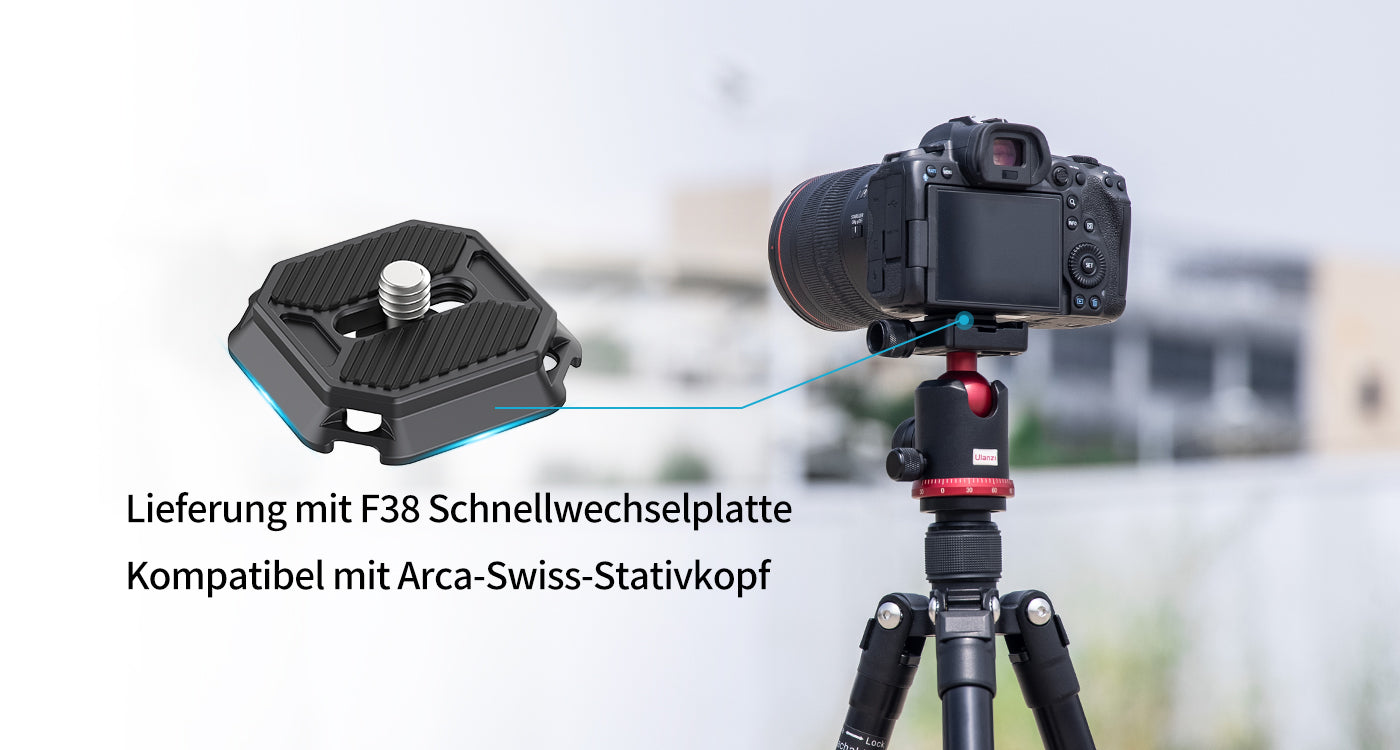 *Hinweis: Aufgrund der erweiterten Kompatibilität der Schnellwechselmechanismen kann es bei der Befestigung der V2 an einigen rechteckigen Arca-Standard-Schnellwechselplatten zu einem minimalen Spiel kommen. Dies ist ein normales Phänomen.