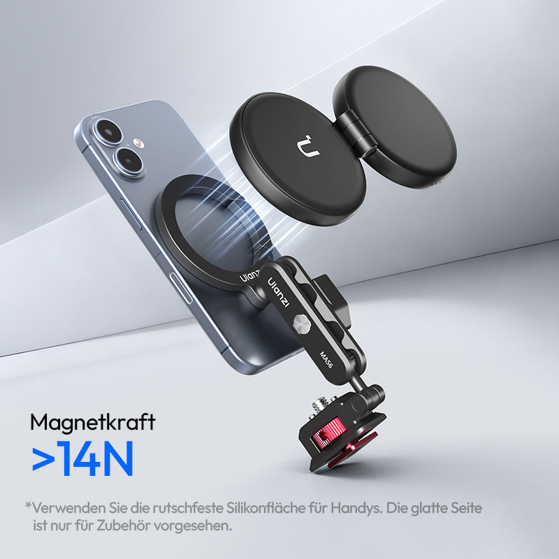 *Verwenden Sie die rutschfeste Silikonfläche für Handys. Die glatte Seite ist nur für Zubehör vorgesehen.*Verwenden Sie den im Lieferumfang enthaltenen Magnet-Adapterring für nicht-magnetische Handys.