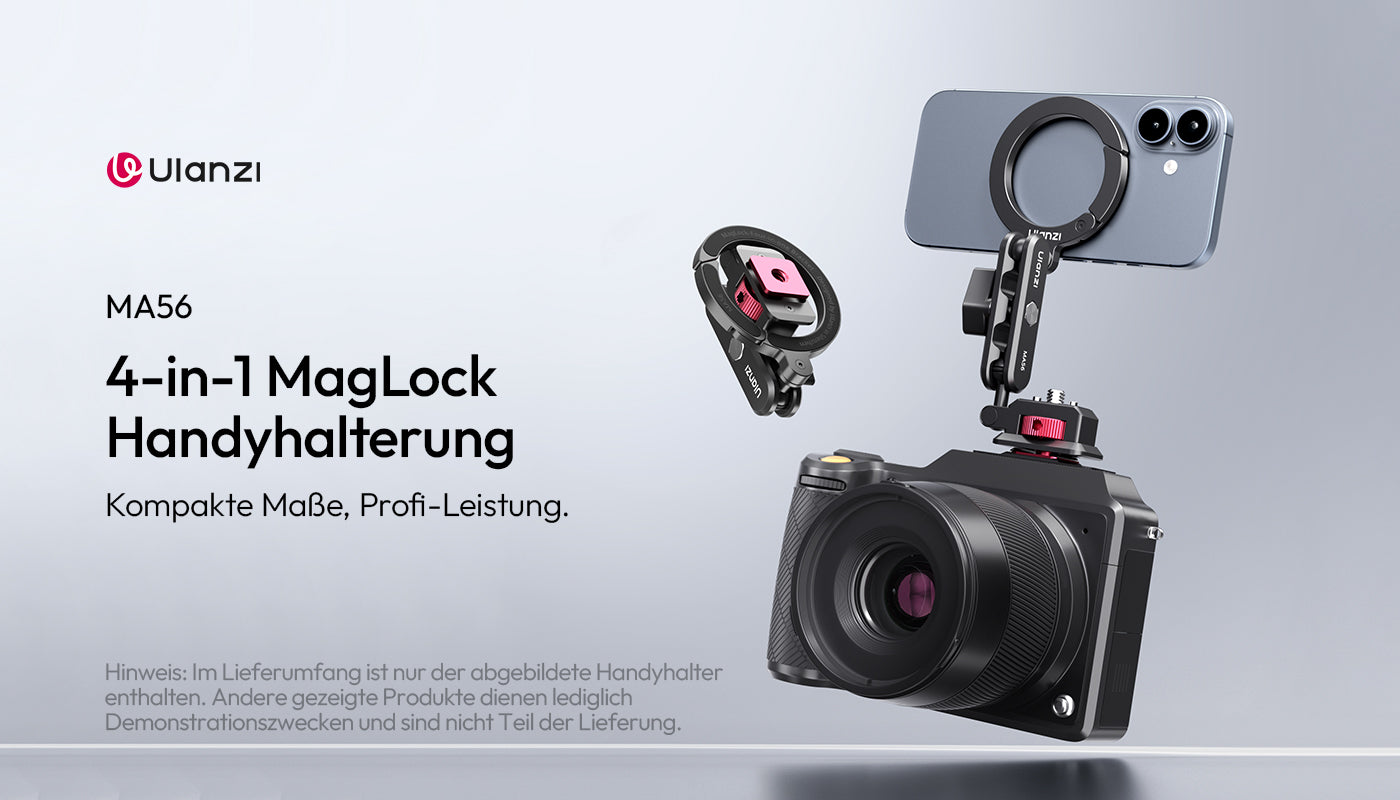 - Integrierter, verdeckter Cold Shoe: Erweiterung via Cold Shoe für den gleichzeitigen Betrieb zweier Kameras.