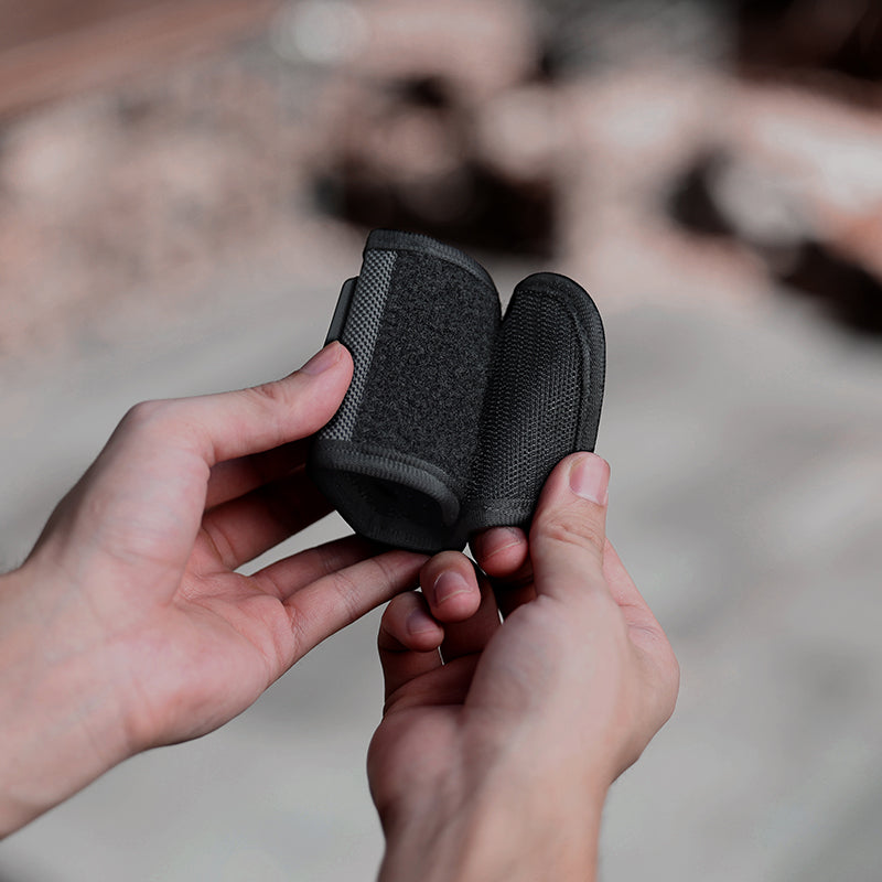 Der Klettverschluss passt sicher auf die meisten Taschen, mit rutschfesten Silikongriffen, die deine Ausrüstung fest an Ort und Stelle halten.