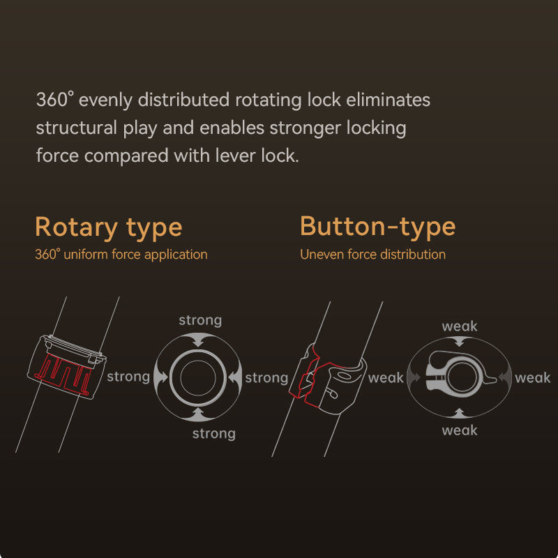 The limited-position locks prevent accidental release from wrong tightening or scratches.