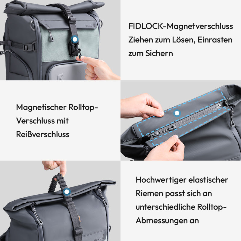 The roll top allows for flexible storage and gives you the option to easily expand the capacity if needed.