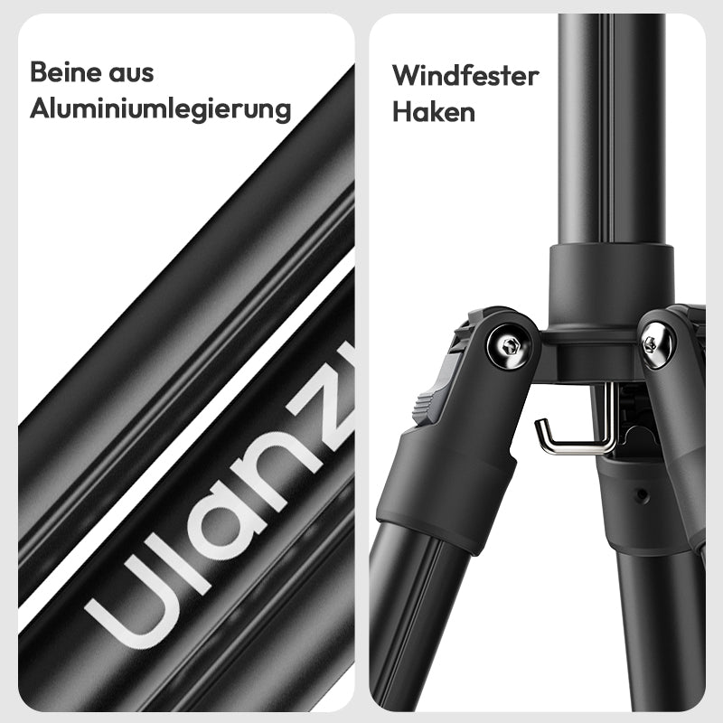 The reinforced aluminum alloy legs provide a stable support without bending. The built-in hook allows for additional weight to increase stability in windy conditions.