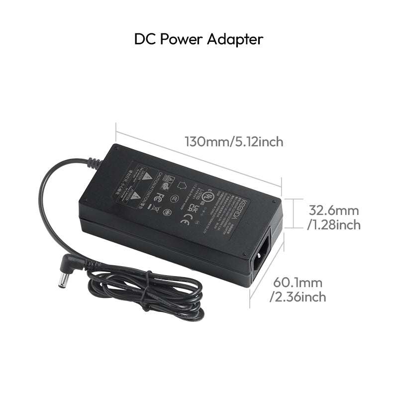 *When using the battery, the light power is about 58W (Max). - DC Power Adapter 20V/4A