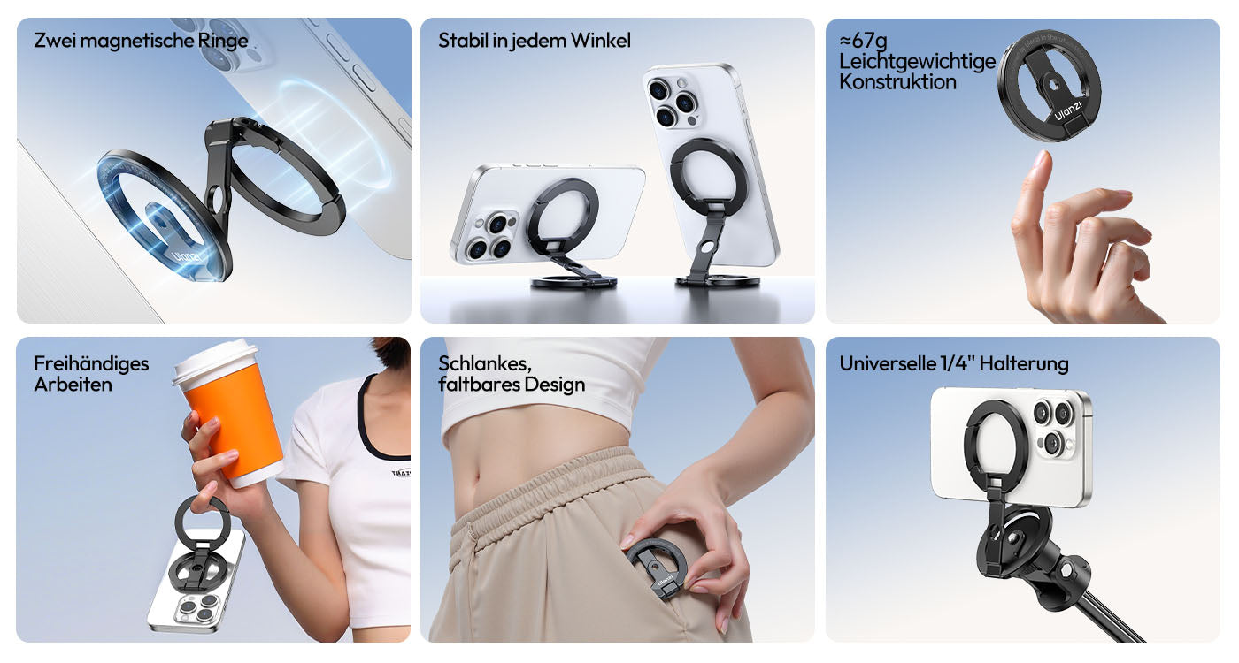 *Kompatibel mit Smartphones, die mit MagSafe ausgestattet sind, oder mit MagSafe-Telefonhüllen oder mit einem Magnetring-Aufkleber.