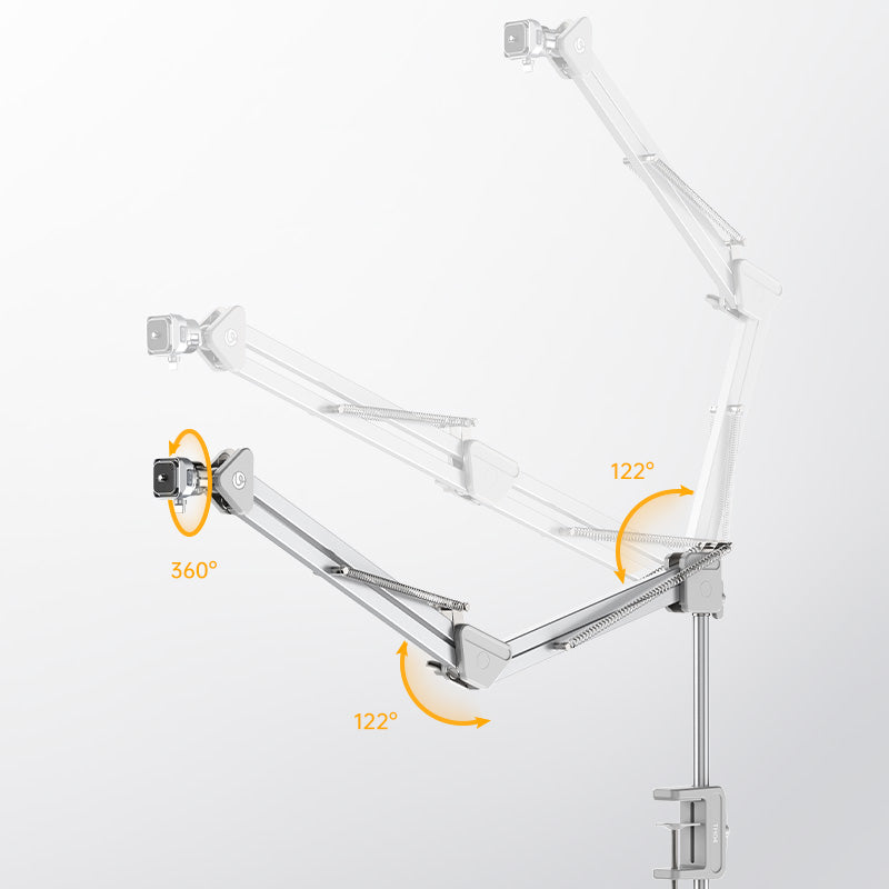 Der Metallarm bietet eine robuste Stütze für Ihre Ausrüstung, so dass diese sicher an ihrem Platz bleibt, ohne durchzuhängen.