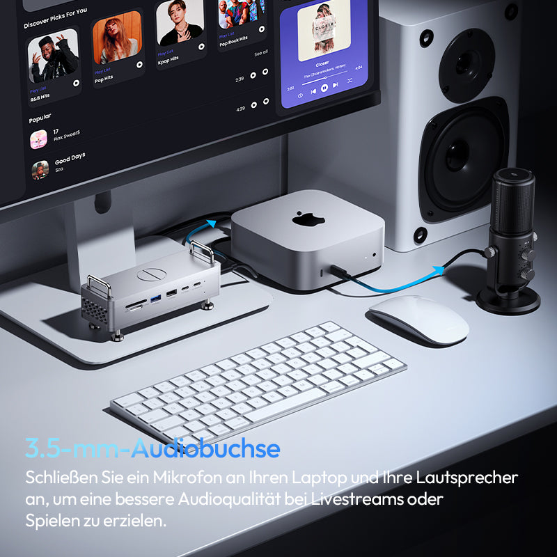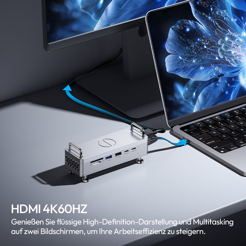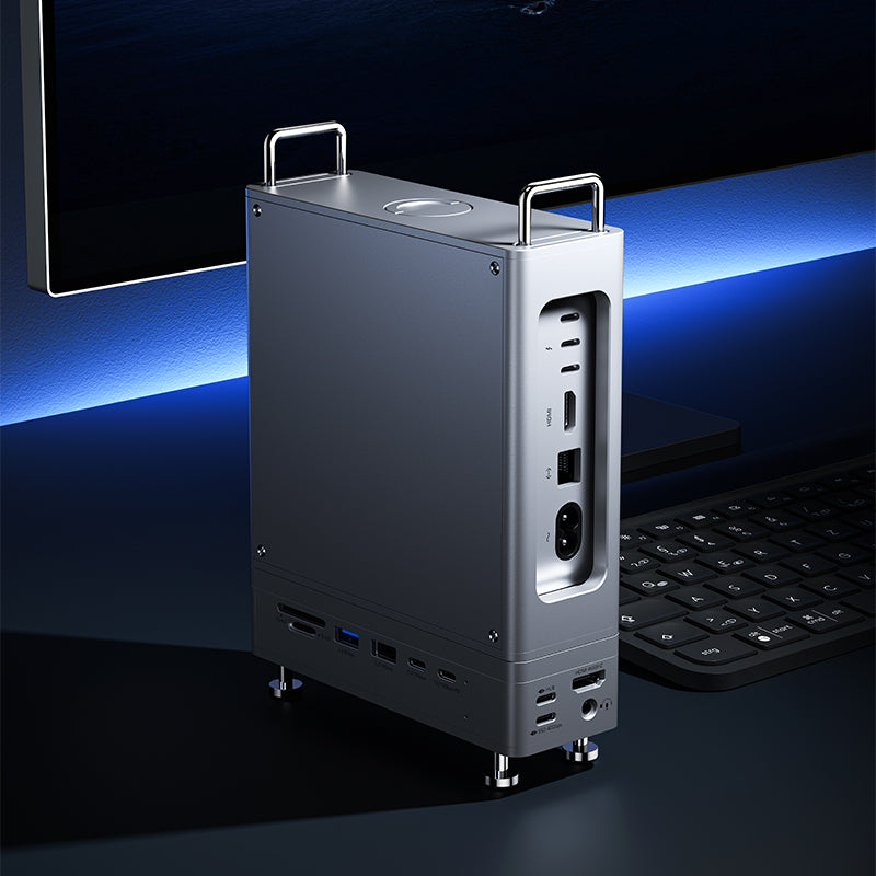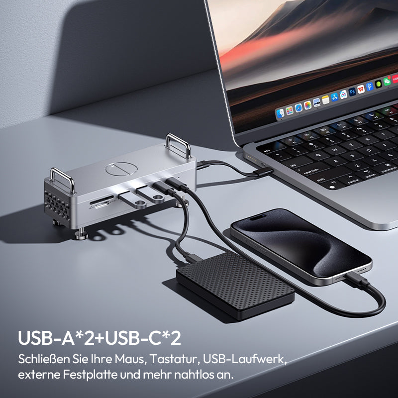 Kompakt und dennoch leistungsstark bietet er eine Multi-Port-Erweiterung, um alle Ihre Geräte in einer einzigen, optimierten Einrichtung anzuschließen.