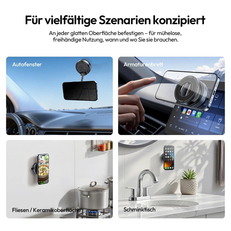 Fixez sur toute surface lisse – pour une utilisation sans effort et les mains libres, quand et où vous en avez besoin.