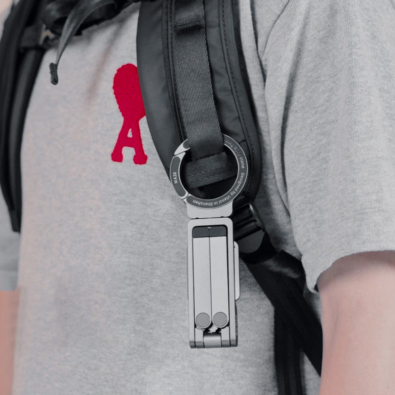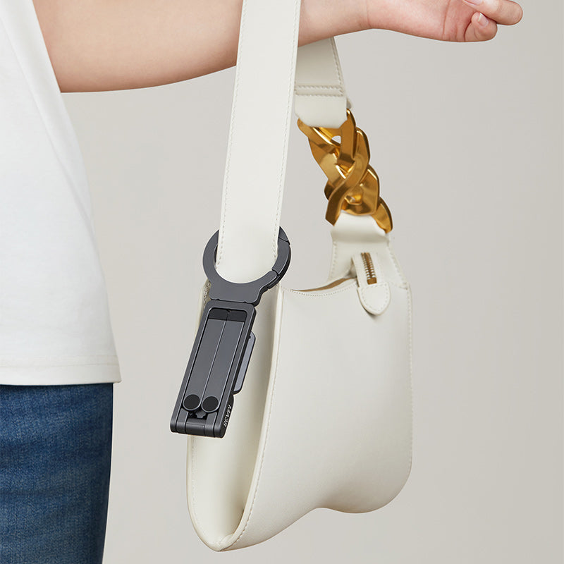 Schießen Sie von oben mit dem klappbaren Haken, der sich perfekt zum Aufhängen an Monitoren, Stühlen, Türen und Geländern eignet.