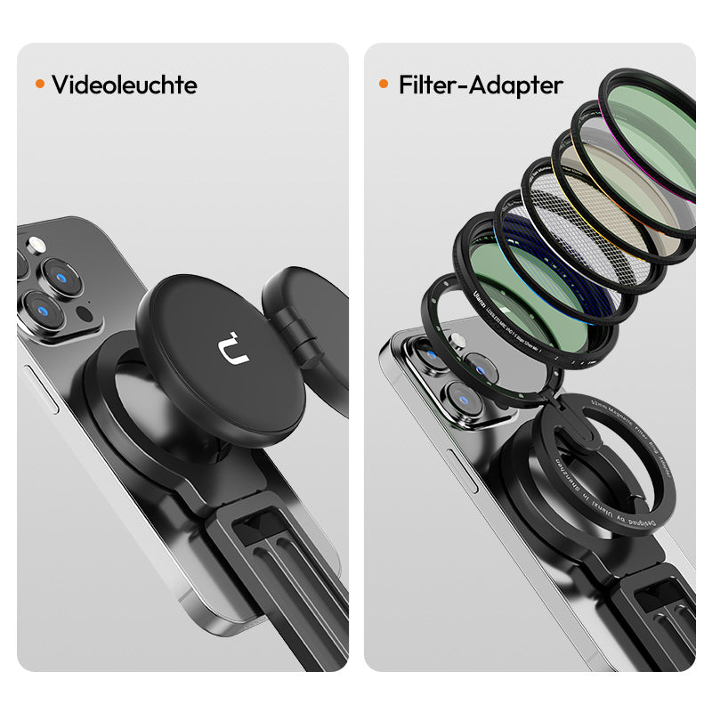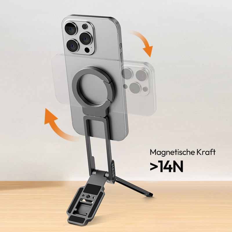Der leistungsstarke Magnetfuß lässt sich mühelos an glatten Metalloberflächen wie Kühlschränken oder Regalen befestigen, sodass Sie die Hände frei haben und sich auf die perfekte Aufnahme konzentrieren können.