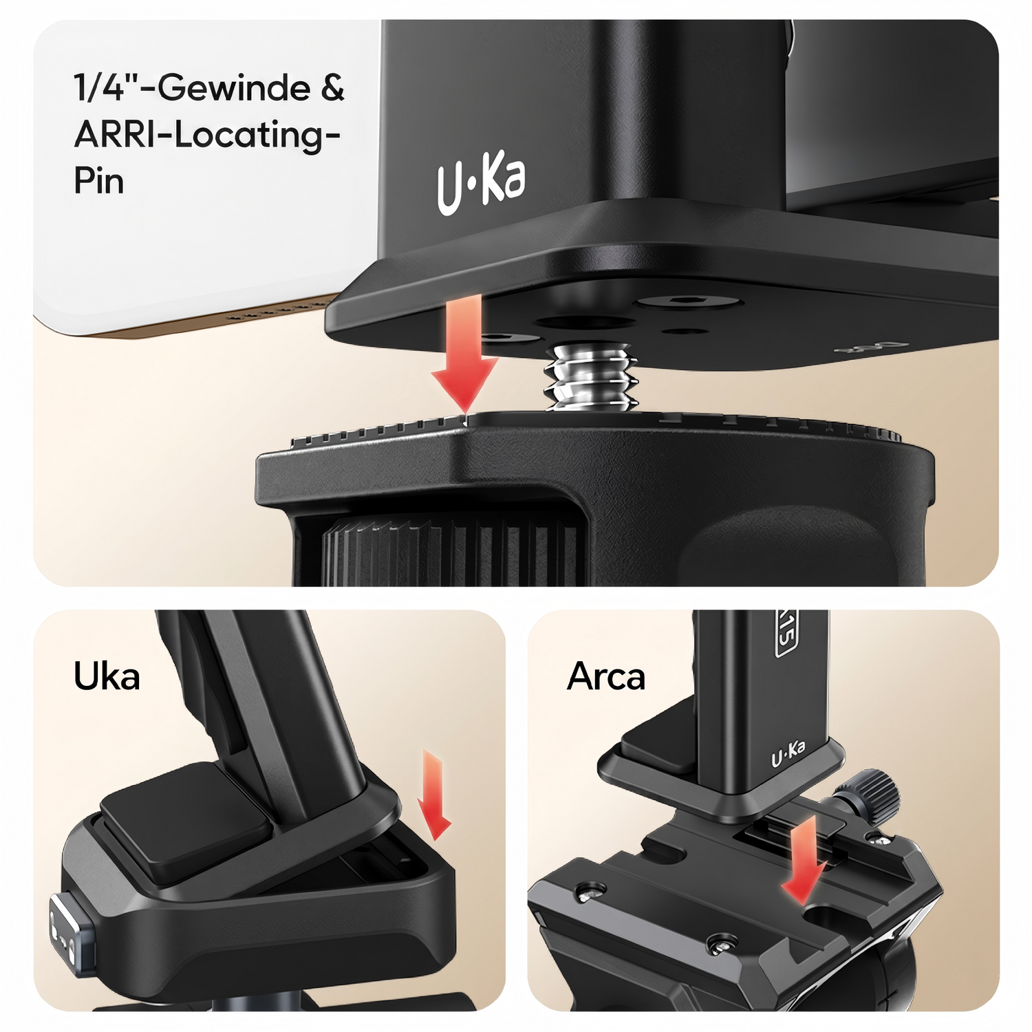 • 2. Universelle Basis: Konzipiert mit universeller Kompatibilität für 1/4", Uka und Arca-Standards.