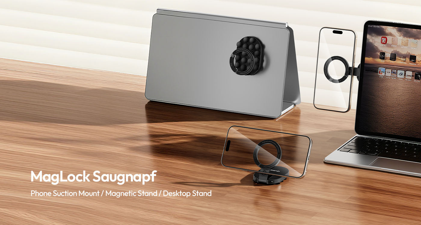 Die flexible Halterung kann als Saugnapfhalterung, magnetischer Ständer oder Tischhalterung verwendet werden, um Ihr Telefon überall sicher aufzubewahren.
