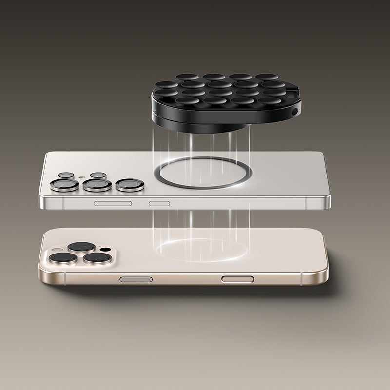 Haftet fest auf Metalloberflächen für vielseitige Filmaufnahmen und verfügt über eine starke Magnetkraft, die Ihr Smartphone sofort fixiert – wechseln Sie mit einer einzigen flüssigen Bewegung nahtlos zwischen Hoch- und Querformat.