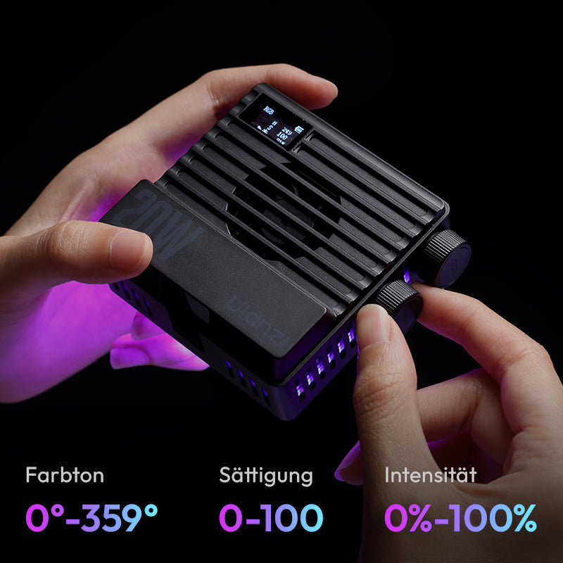 Entfesseln Sie Ihre Kreativität mit dem vollfarbigen RGB. Mit dem HSI-Farbmodus können Sie Farbton, Sättigung und Intensität mühelos mit dem stufenlosen Regler fein abstimmen.
