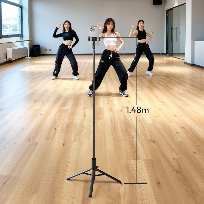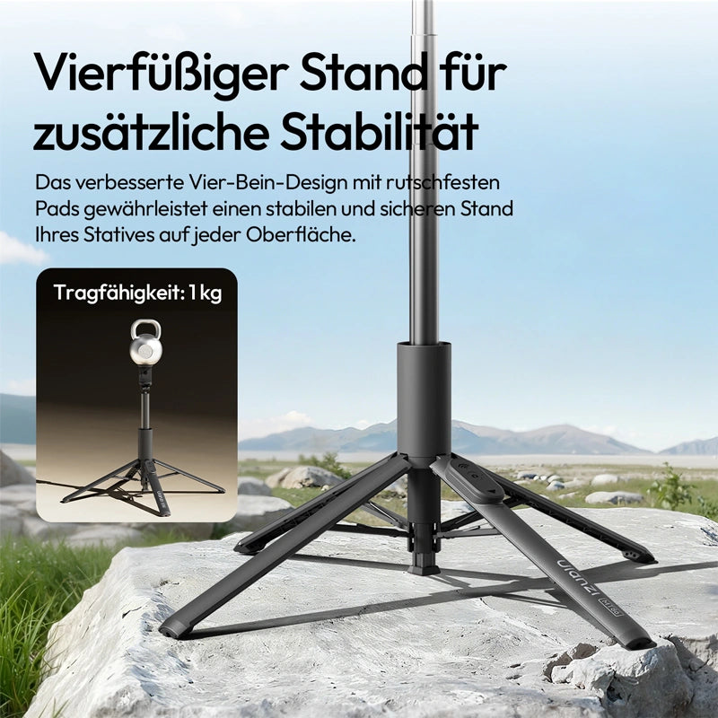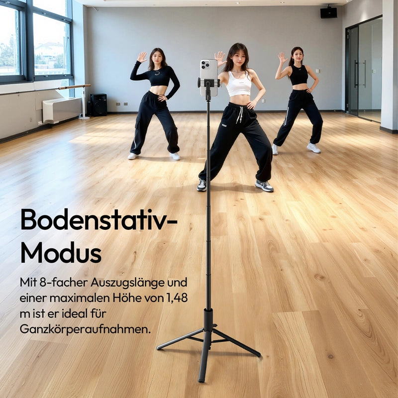 • 4. Bodenstativ-Modus: Mit 8-facher Auszugslänge und einer maximalen Höhe von 1,48 m ist er ideal für Ganzkörperaufnahmen.