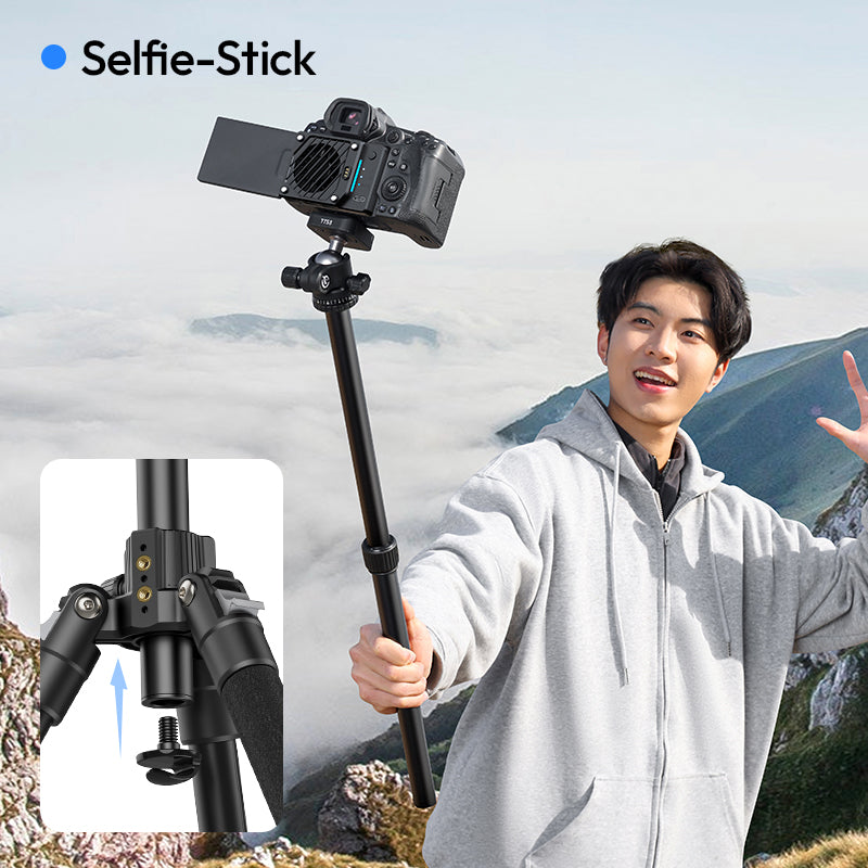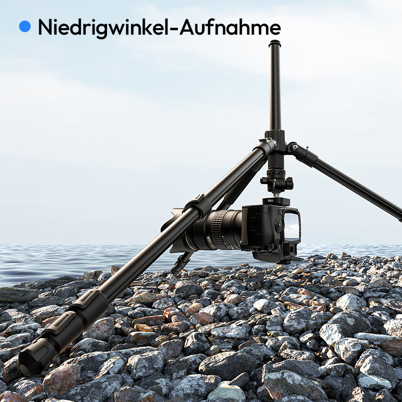Wechseln Sie mühelos zwischen den Modi, um Aufnahmen aus niedrigen Winkeln zu machen, oder entfernen Sie die Mittelsäule, um das Stativ in einen Selfie-Stick zu verwandeln.