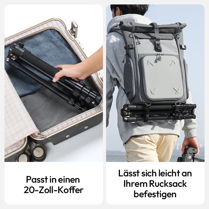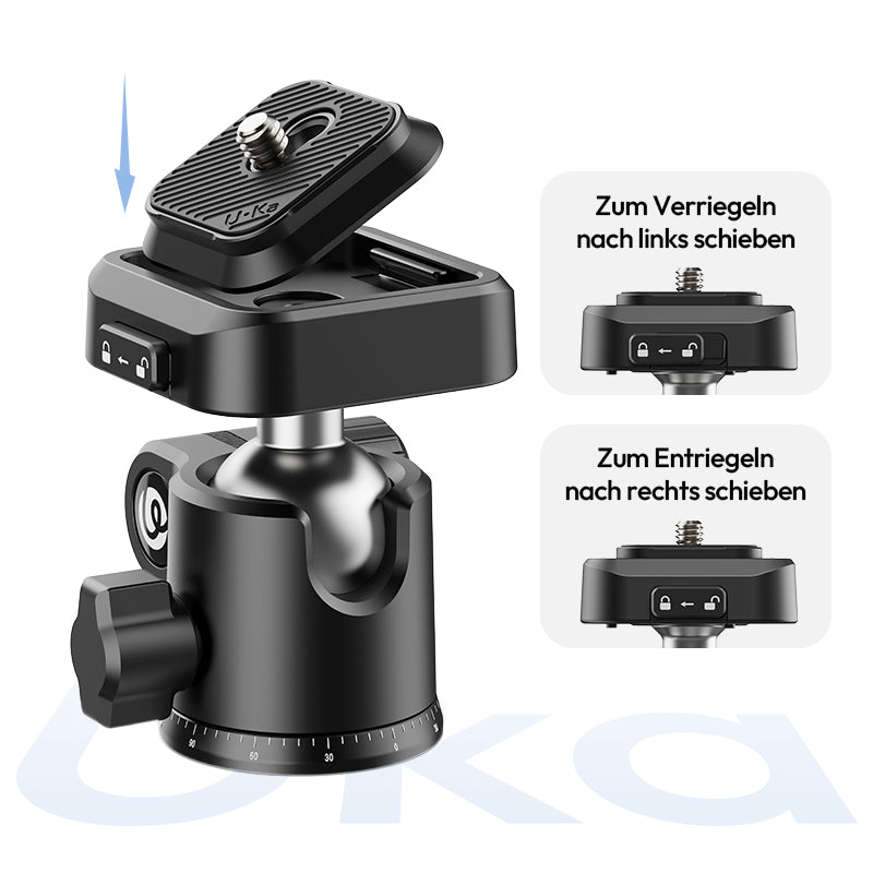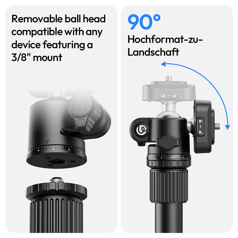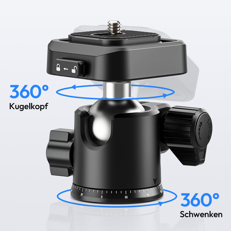 Der Kugelkopf ermöglicht eine sanfte 360°-Drehung und mühelose Übergänge von Hoch- zu Querformat, damit Sie jedes Mal die perfekte Aufnahme machen können.