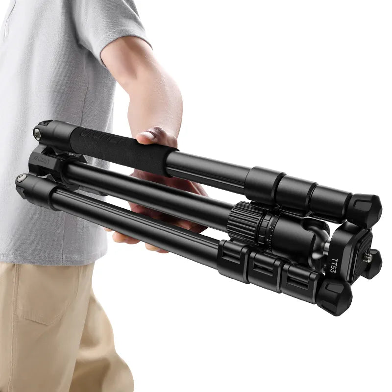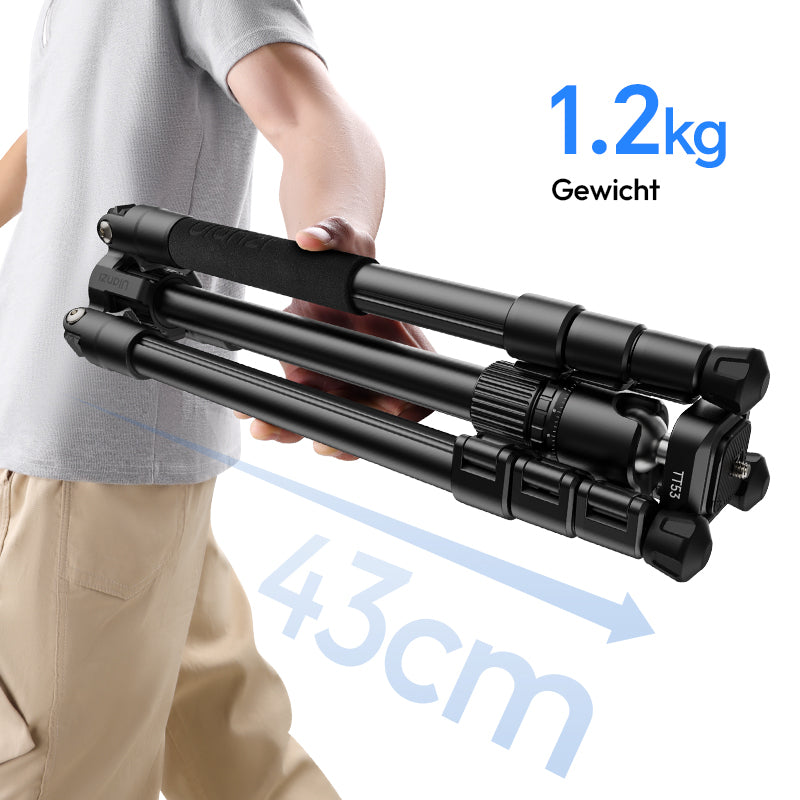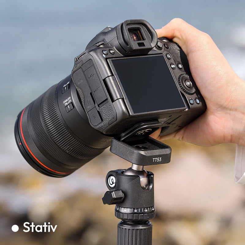 Der aus einer Aluminiumlegierung gefertigte Kopf des TT53-Stativs ist bis zu 3 kg belastbar, während die Beine bis zu 8 kg tragen können, was für Stabilität bei jeder Aufnahme sorgt.