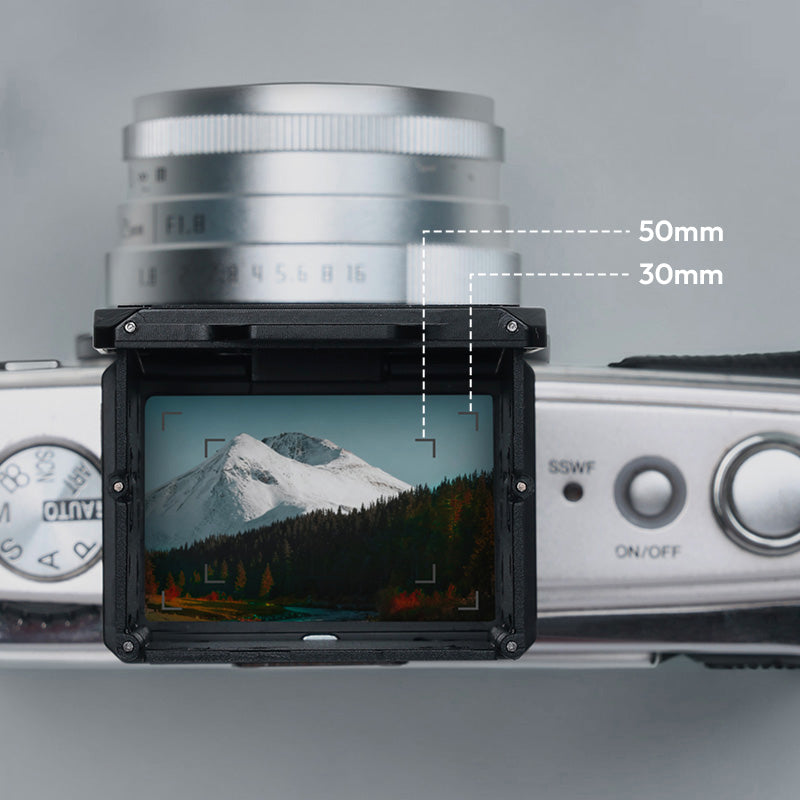 Geeignet für Objektive mit einer Brennweite von 28 mm, Formatgröße 135, mit Sucherrahmen für Brennweiten von 35/50 mm für ein beeindruckendes Erlebnis beim Komponieren und Fokussieren.