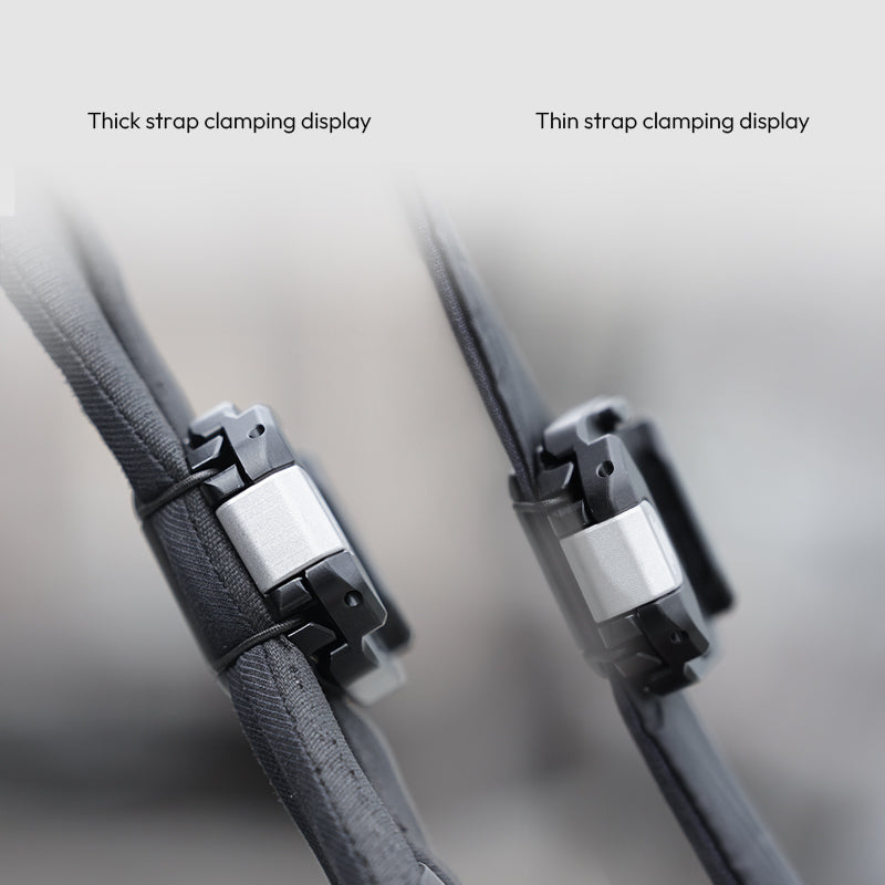 3. Adatto per larghezza tracolla zaino ≤ 80 mm, spessore massimo tracolla con clip 20 mm.