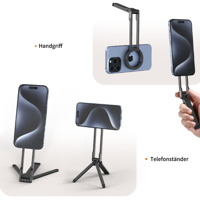 • 2. Doppelseitige Anpassung: Nutzen Sie den doppelseitigen Magneten für die vielseitige Befestigung Ihres Telefons und anderen Zubehörs.