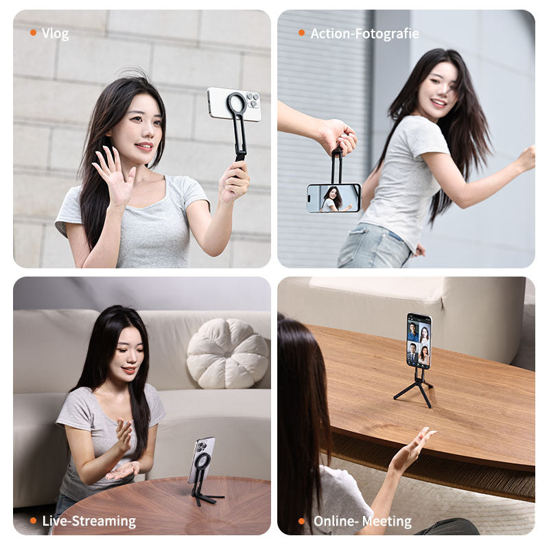 • 1. Sofortige sichere Befestigung: Sichern Sie Ihr Telefon schnell mit MagSafe für einen einfachen Wechsel zwischen horizontalem und vertikalem Modus.