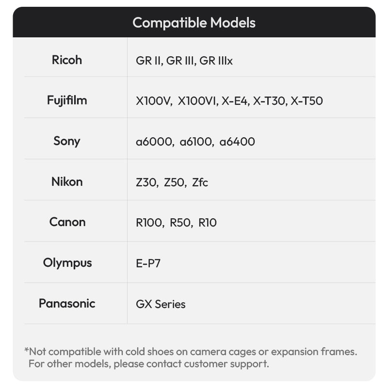 *Nicht kompatibel mit Kaltschuhen an Kamerakäfigen oder Erweiterungsrahmen. Bei anderen Modellen wenden Sie sich bitte an den Kundendienst.