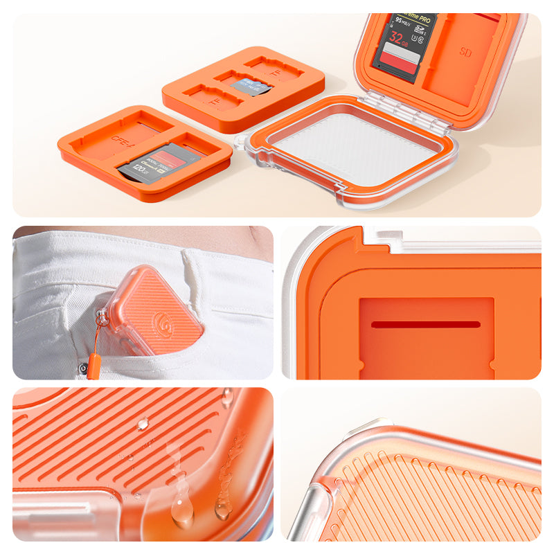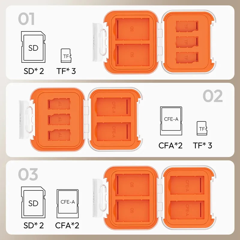 Passen Sie Ihre Kartenfächer an - tauschen Sie den Silikoneinsatz aus, um SD-, TF- oder CFA-Karten einzusetzen. Wählen Sie 2 von 3 Kartenfächern für eine organisierte Aufbewahrung.
