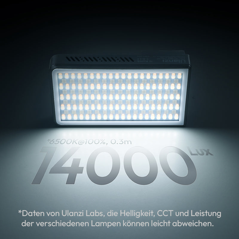 *Daten von Ulanzi Labs, die Helligkeit, CCT und Leistung der verschiedenen Lampen können leicht abweichen.