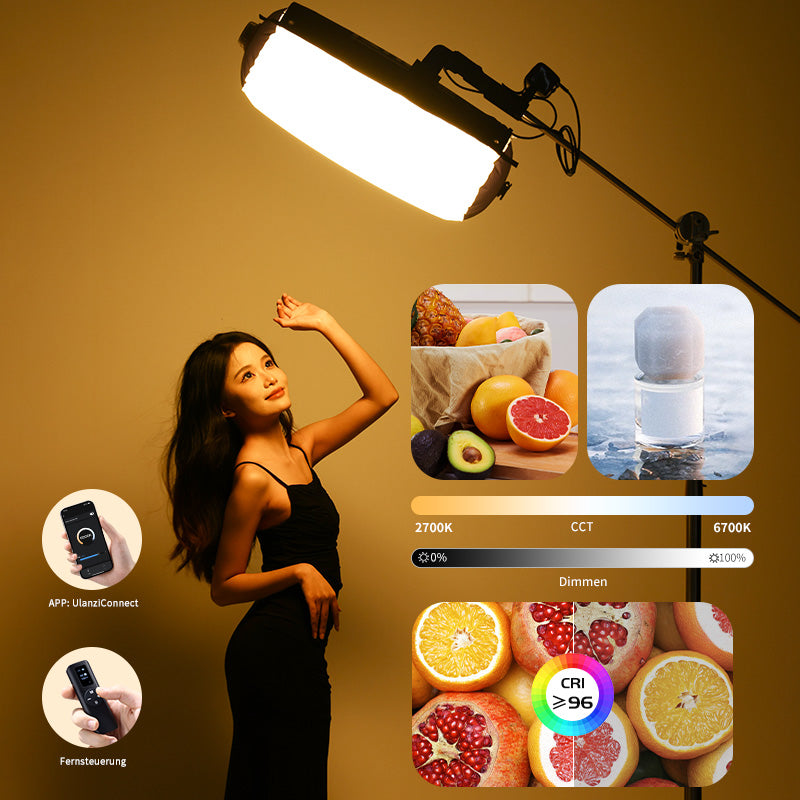 • 4. Stellen Sie CCT und Helligkeit stufenlos aus bis zu 10 m Entfernung ein, plus 10 Lichteffekte für verschiedene Szenarien.