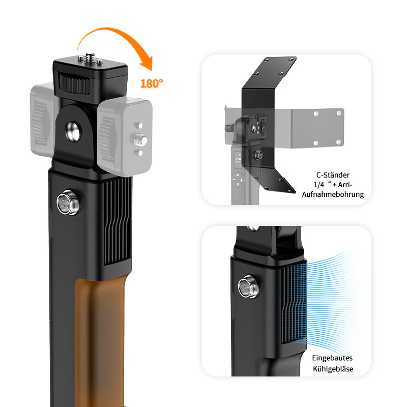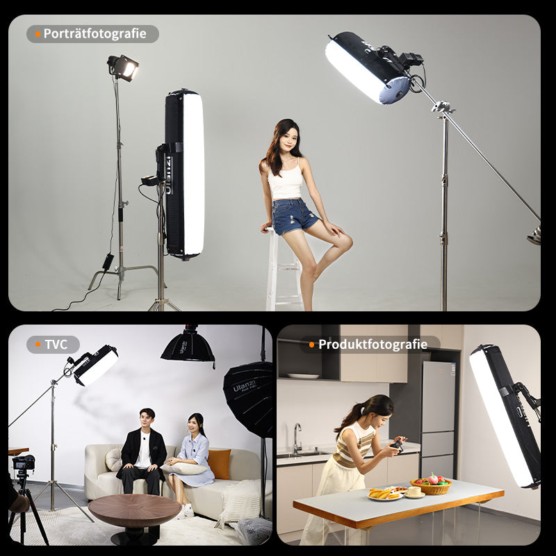 Ob aus der Hand, auf einem Stativ oder hängend - diese Leuchte bietet vielfältige Beleuchtungsmöglichkeiten für Ihre kreativen Anforderungen.