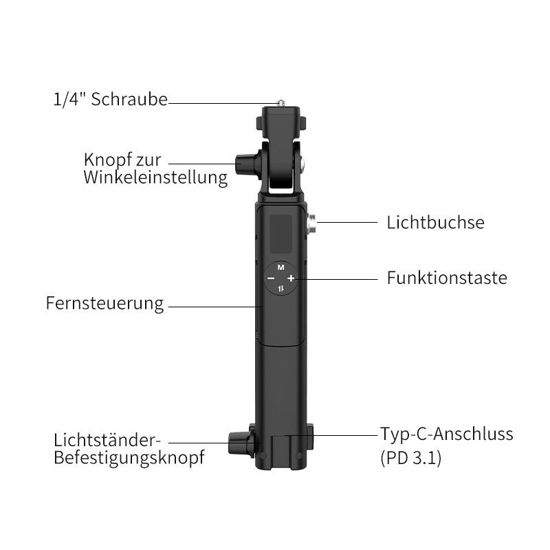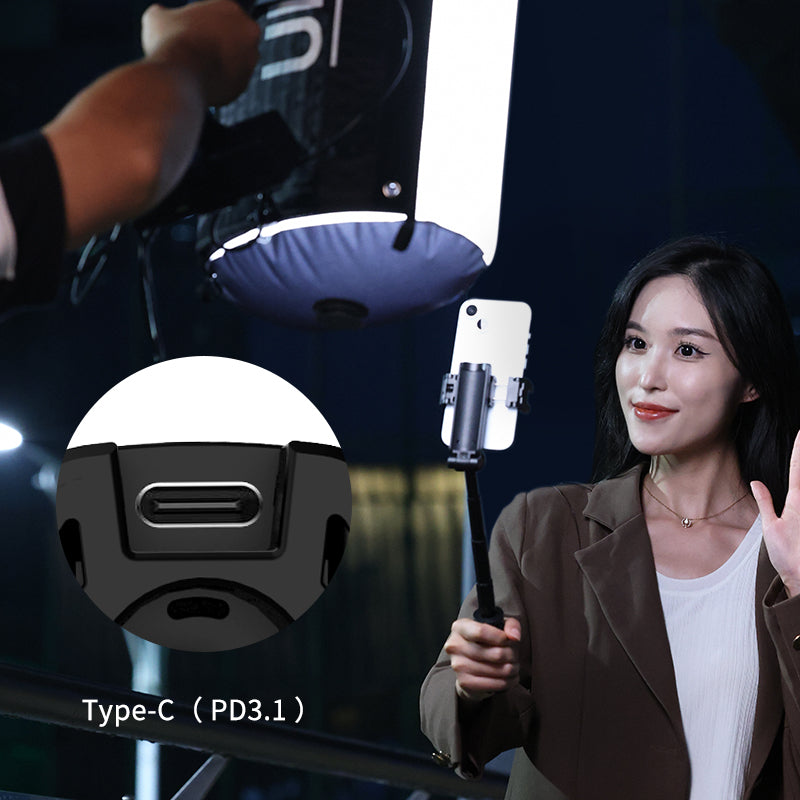Sie wird über einen Typ-C-Anschluss betrieben und unterstützt PD3.1-Schnellladung, sodass Sie eine Powerbank für Außenaufnahmen anschließen können.