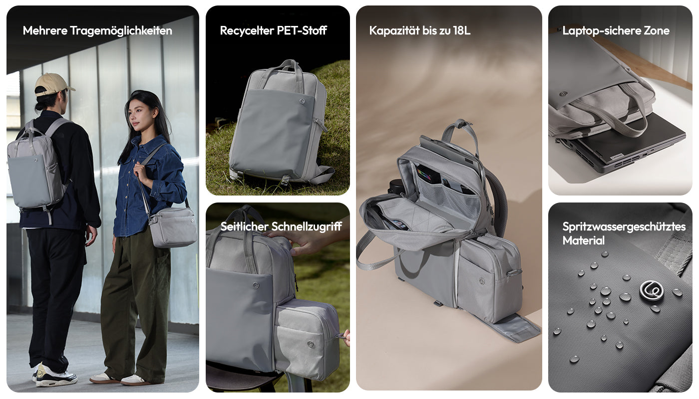 • 1. Die herausnehmbare Innentasche bietet ein flexibles 2-in-1-Setup, das sich leicht an verschiedene Tragestile für jedes Szenario anpassen lässt.