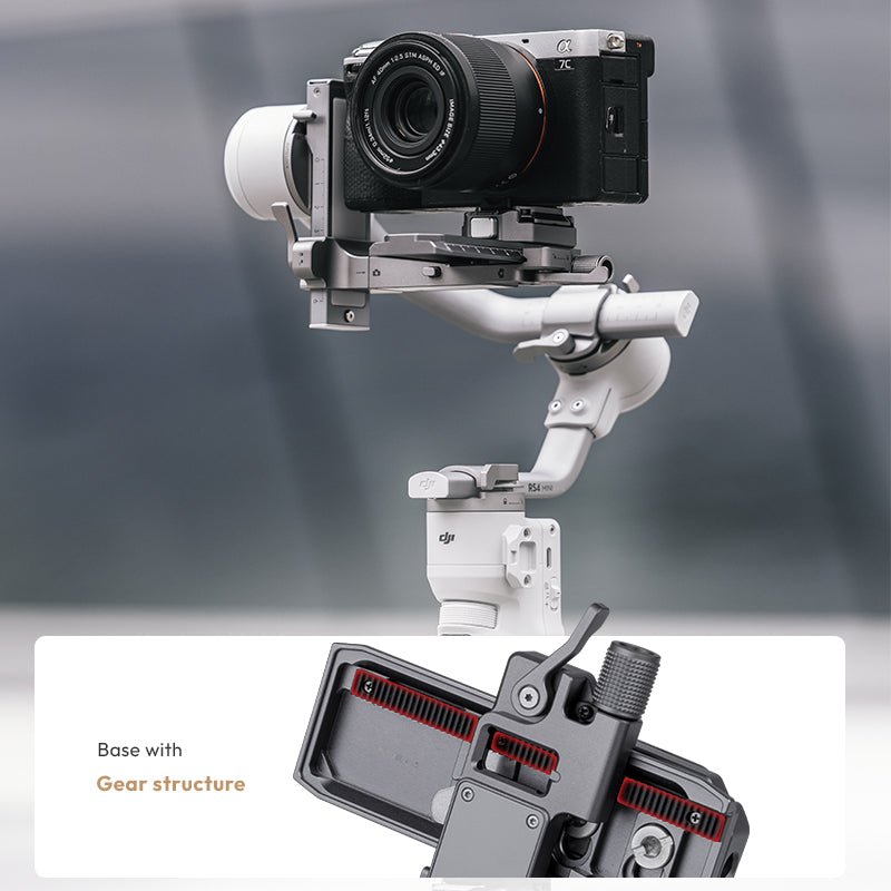 Speziell für den DJI RS4 Mini Stabilisator entwickelt, um eine präzise Passform zu gewährleisten. Die eingebaute Zahnradstruktur an der Basis ermöglicht eine fein abgestimmte Einstellung von vorne nach hinten für eine optimale Balance.