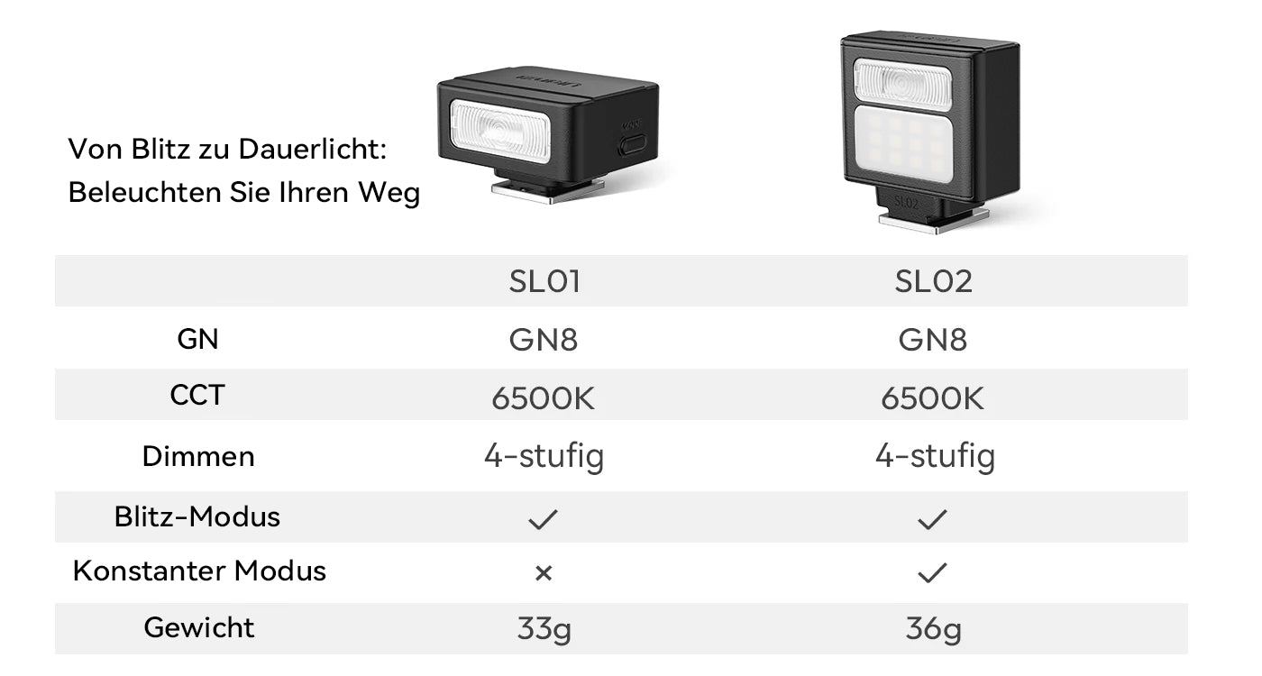 *SL02: Halten Sie die MODE-Taste gedrückt, um zwischen den Modi Flutlicht und Konstantlicht zu wechseln.