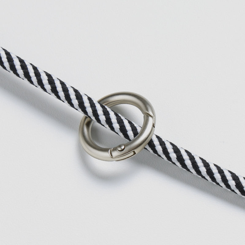Befestigen Sie beide Enden des Handgelenkriemens am Loch für das Schlüsselband des Pocket 3 und am Ringclip, und haken Sie dann den Ringclip am Schulterriemen ein.