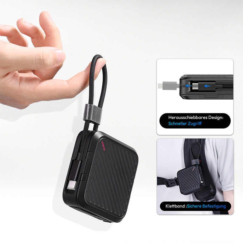 Das 2-in-1-Ladekabel und das Schlüsselband sind langlebig, flexibel und perfekt für unterwegs.