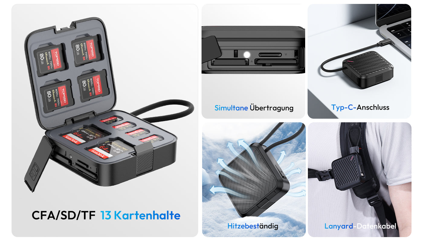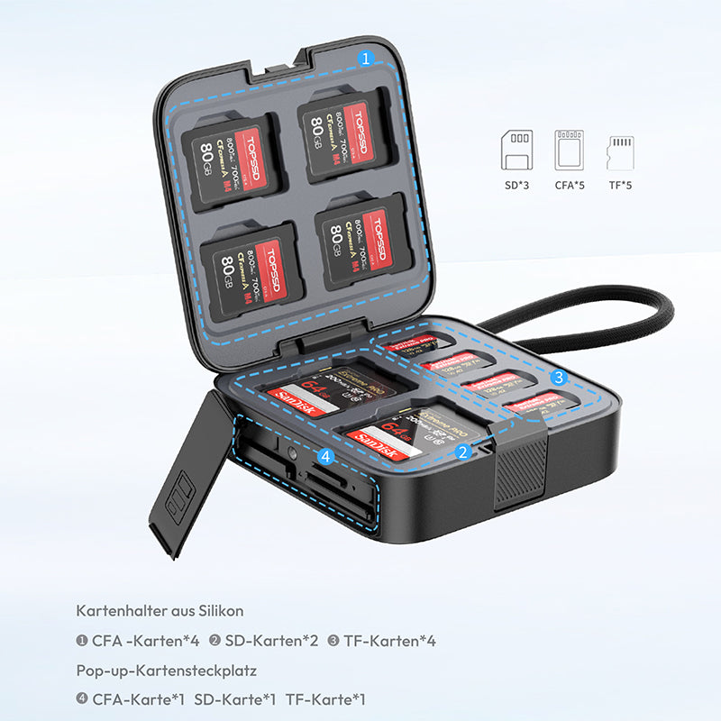 Speichern Sie bis zu 13 Karten in einer kompakten Tasche. Organisieren Sie Ihre CFA-, SD- und TF-Karten mit Leichtigkeit.