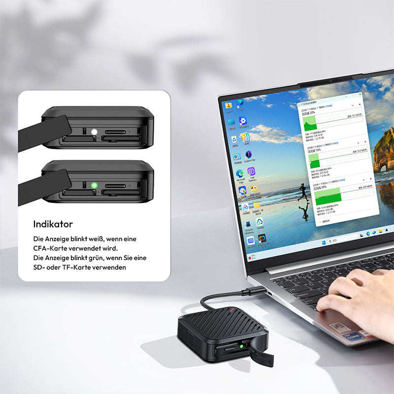 Mit drei integrierten Chips für die Hochgeschwindigkeitsdatenübertragung können Sie drei beliebige Karten gleichzeitig verwenden.