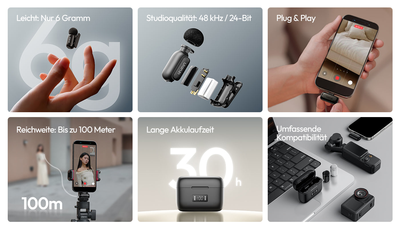 • 5. Umfassende Kompatibilität: Funktioniert mit Smartphones, Actionkameras, Computern und mehr – für einfache und effiziente Kreation.
