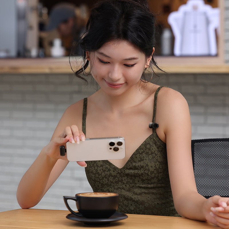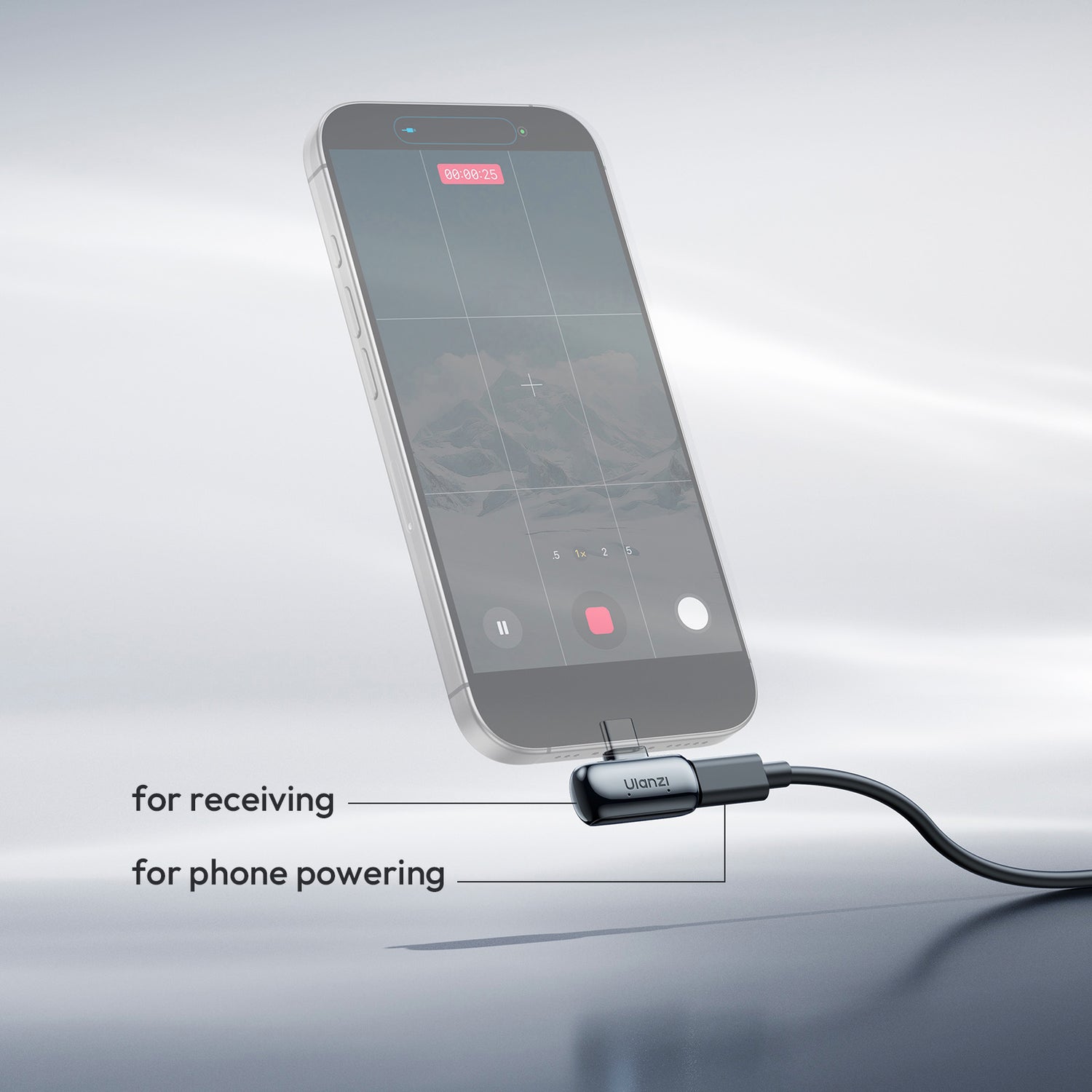 Der Receiver lädt Ihr Telefon während des Betriebs – sorgenfreie Langzeitaufnahmen und Livestreams sind garantiert.