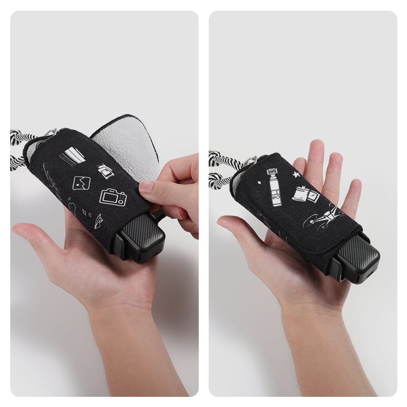Wickeln Sie das Pocket 3 und die Schutzhülle mit Hilfe des Klettverschlusses von beiden Seiten fest ein, damit es gut sitzt.
